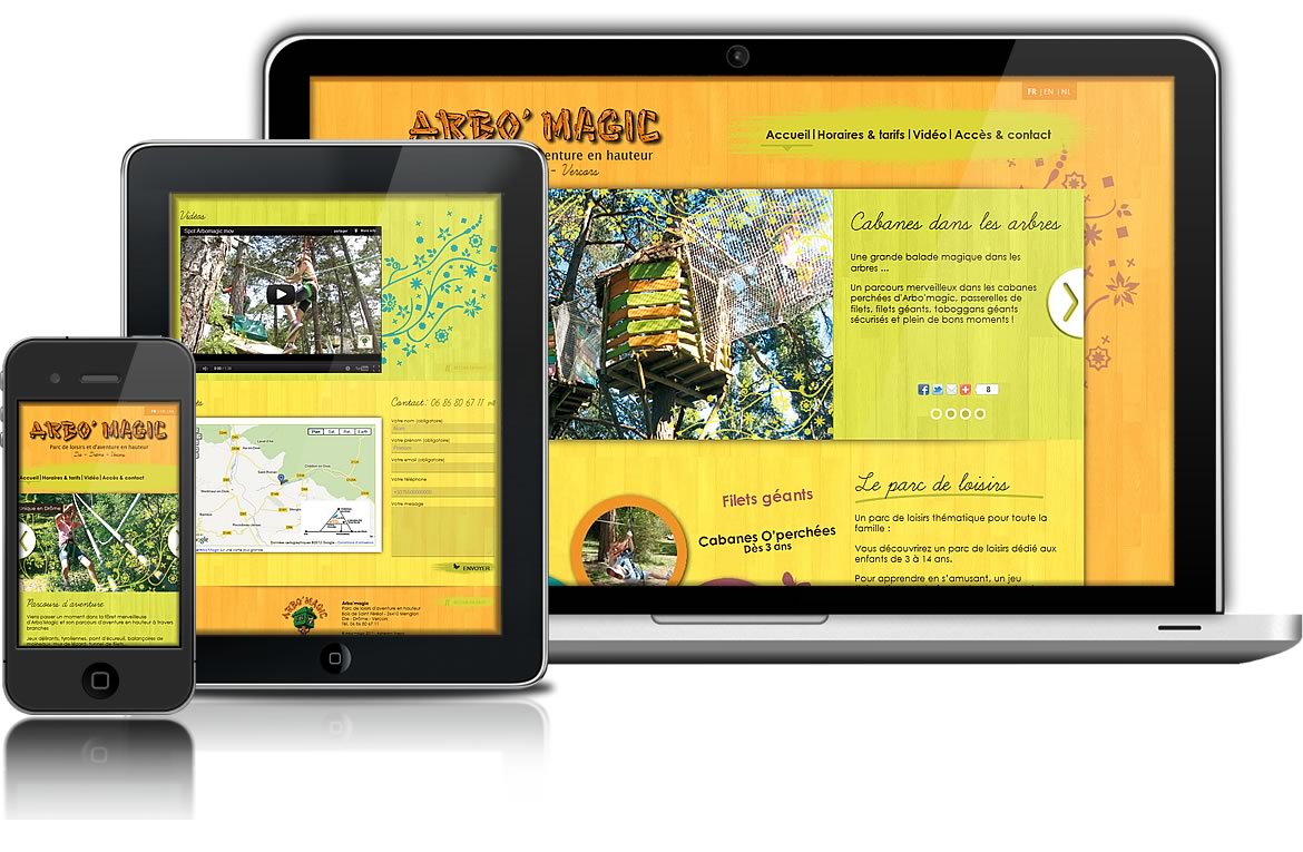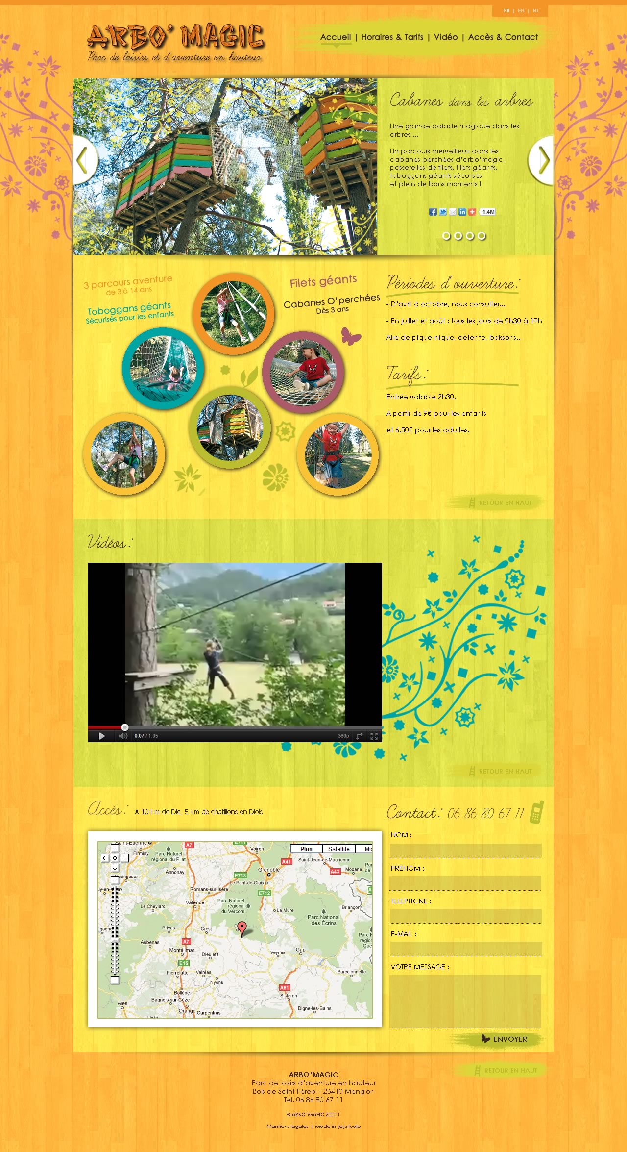 Pour ce parc proposant des parcours d’aventure, web design et développement web à partir des documents imprimés créés par le studio Calandre, theming et intégration WordPress sur base html5 boilerplate / bootstrap.