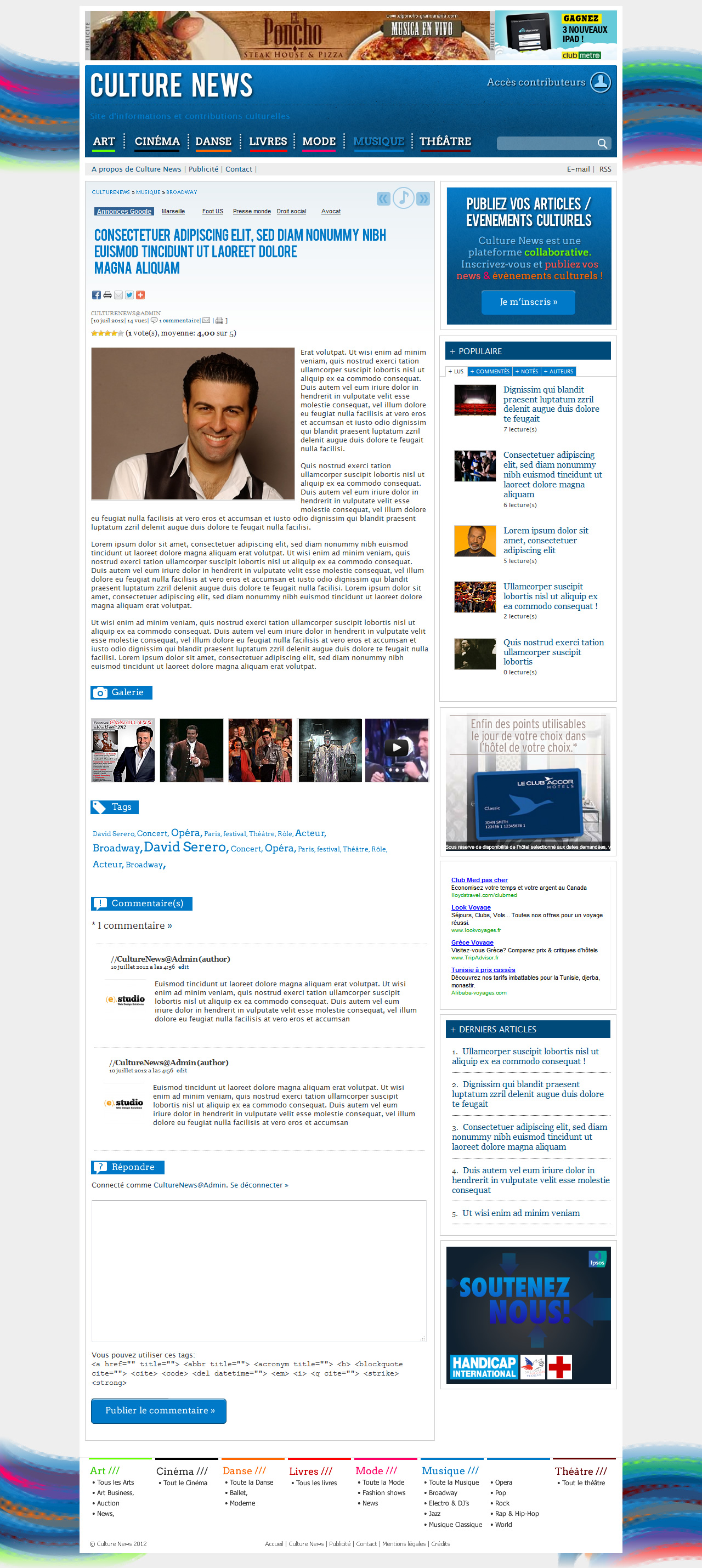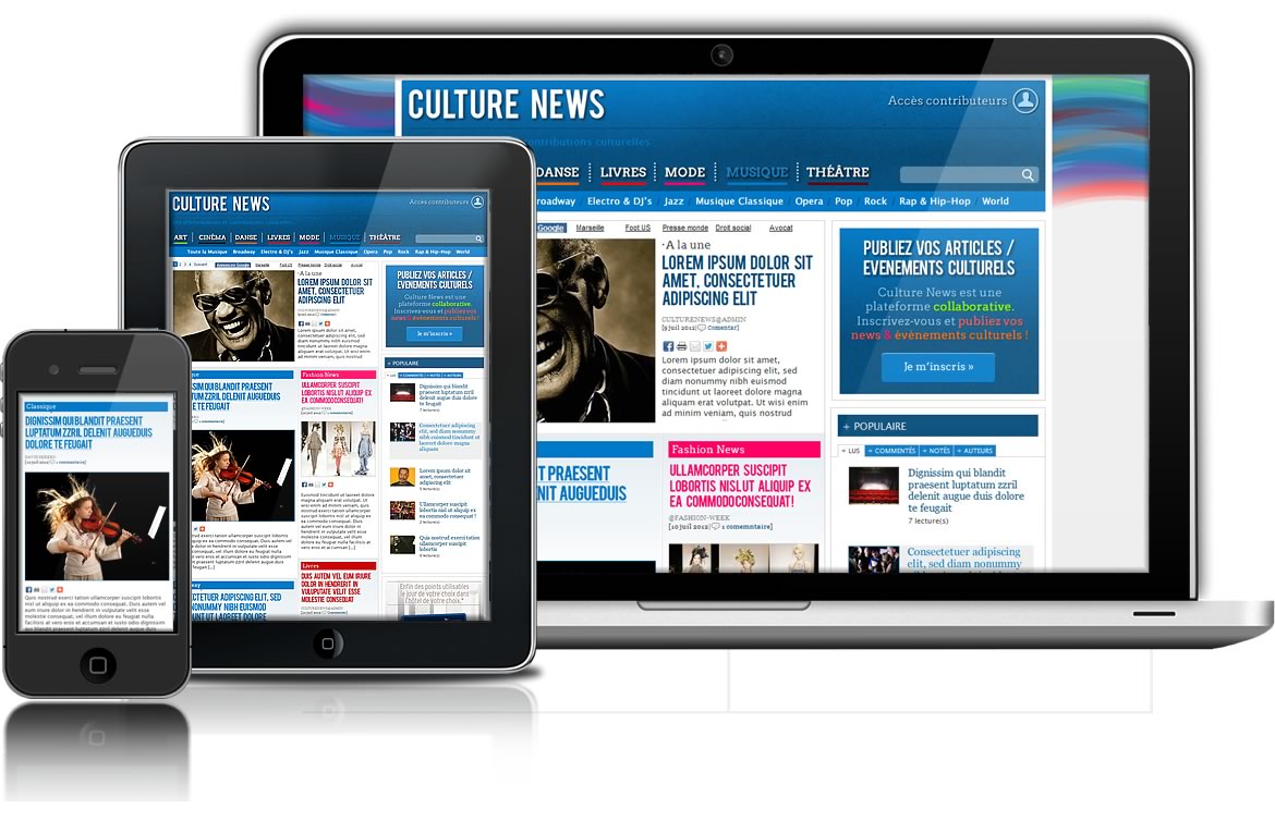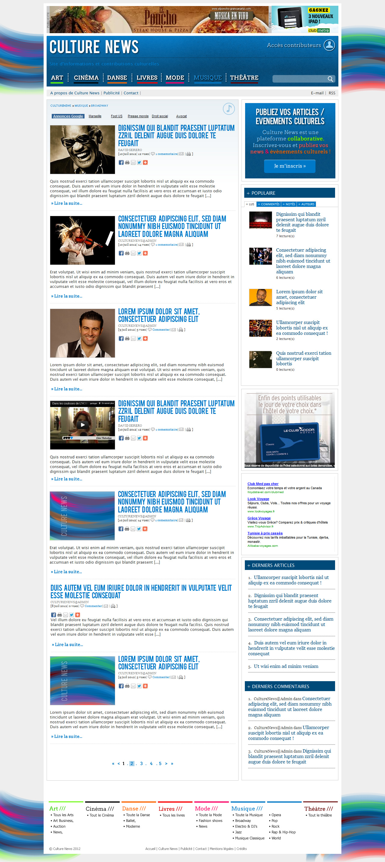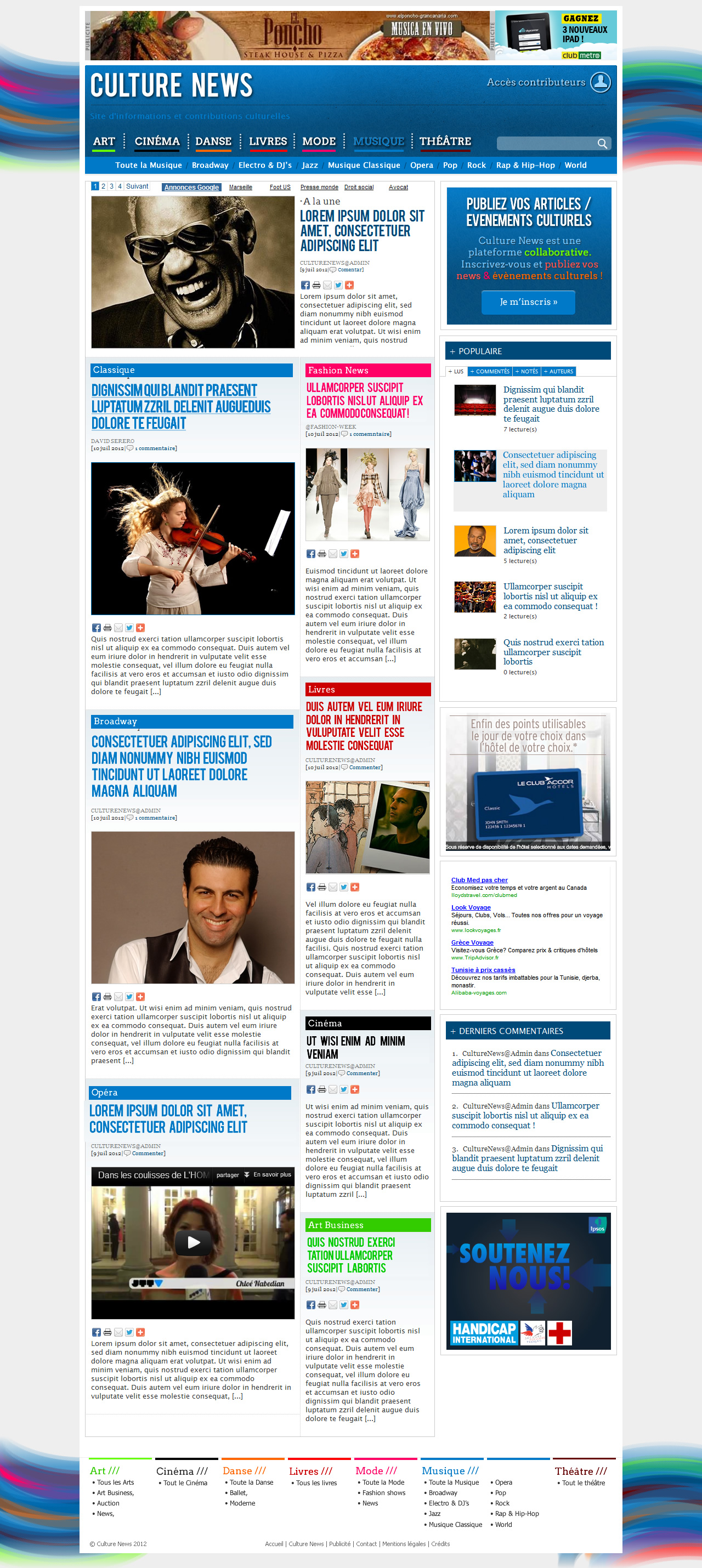 Pour ce magazine de news culturelles,conception, design web, gestion de projet, theming et développement WordPress sur base boilerplate / bootstrap.