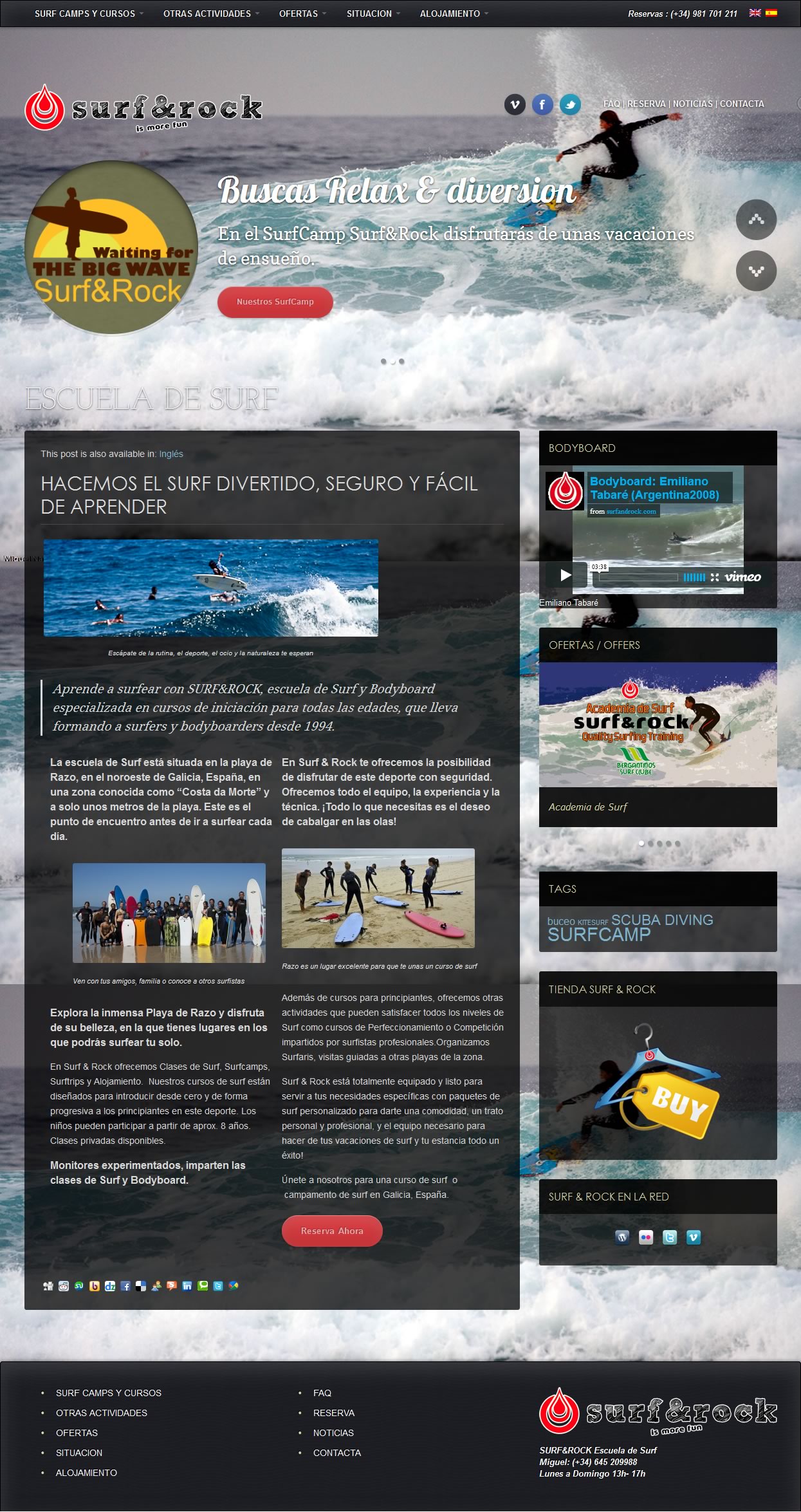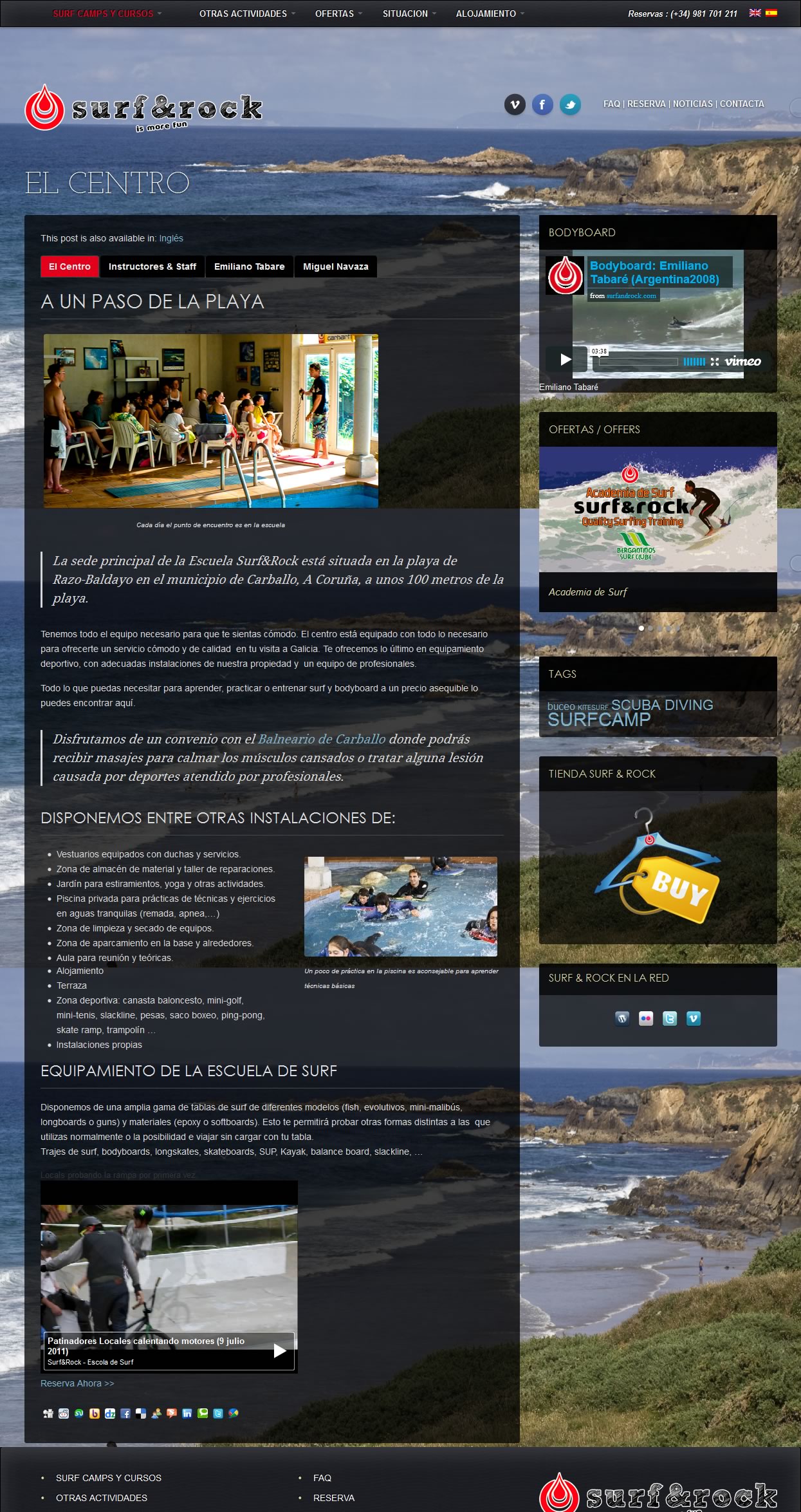 Pour le site web de cette école de surf, theming et développement WordPress sur base boilerplate / bootstrap à partir du site wordpress existant et refonte architecture web et navigation.