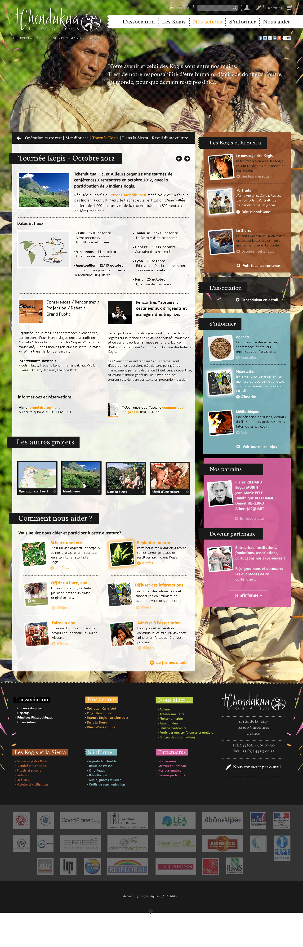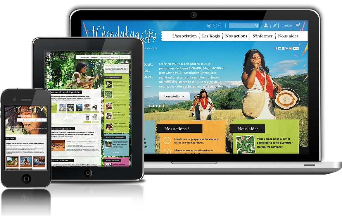 Refonte web pour cette association qui travaille avec les indiens Kogis pour une navigation plus simple et imagée sur la base de la charte graphique print réalisée @Calandre. Gestion de projet, conception web, navigation, web design, Intégration et développement WordPress + e-commerce et webmastering.