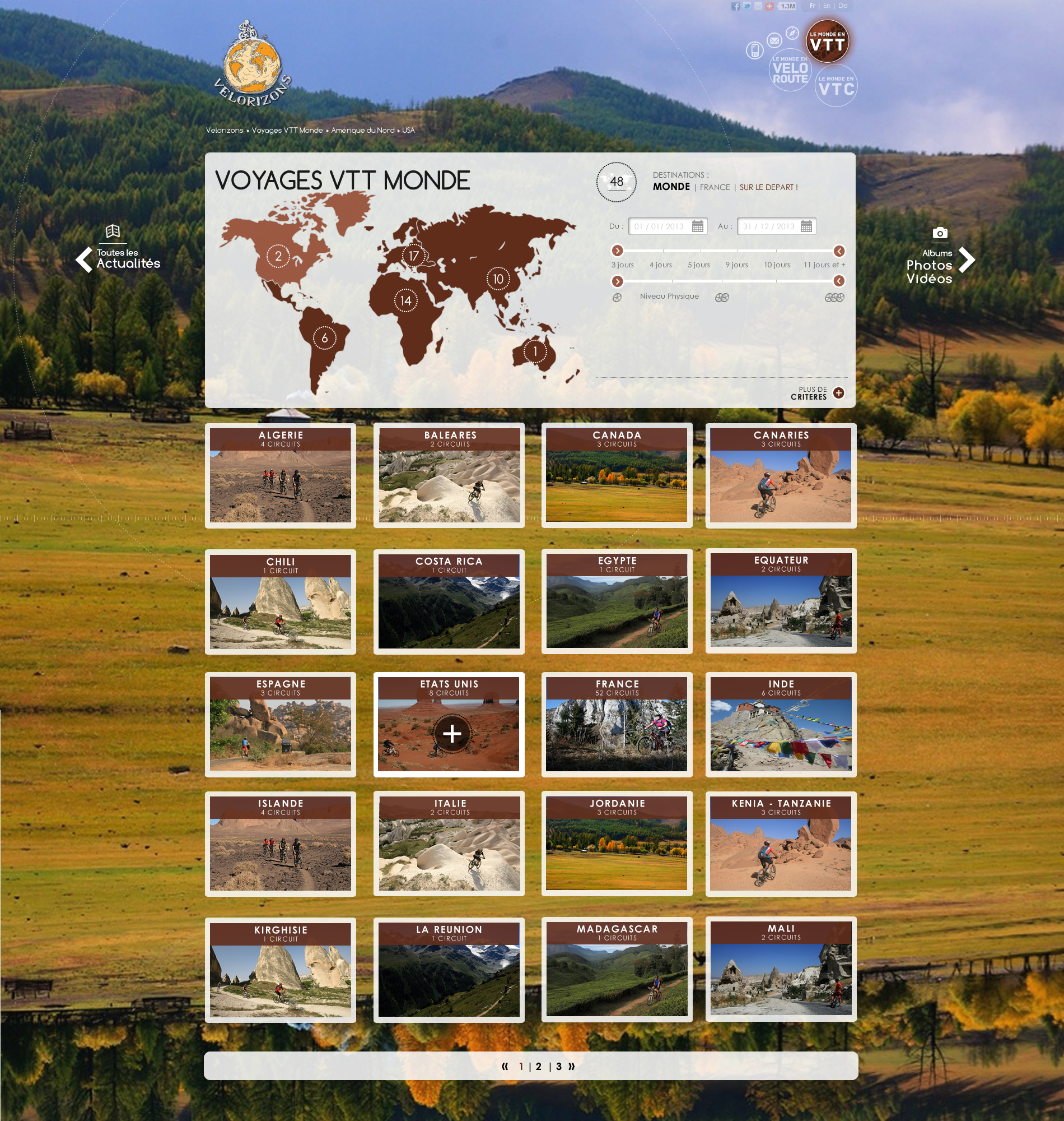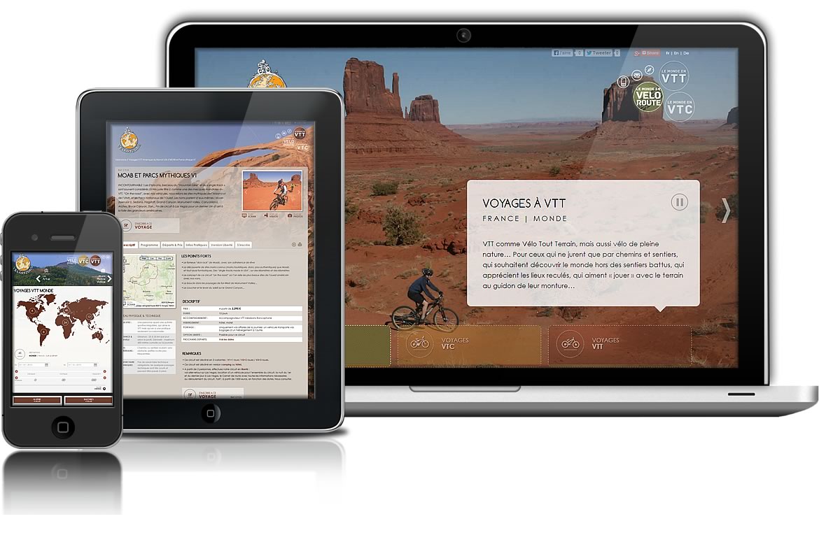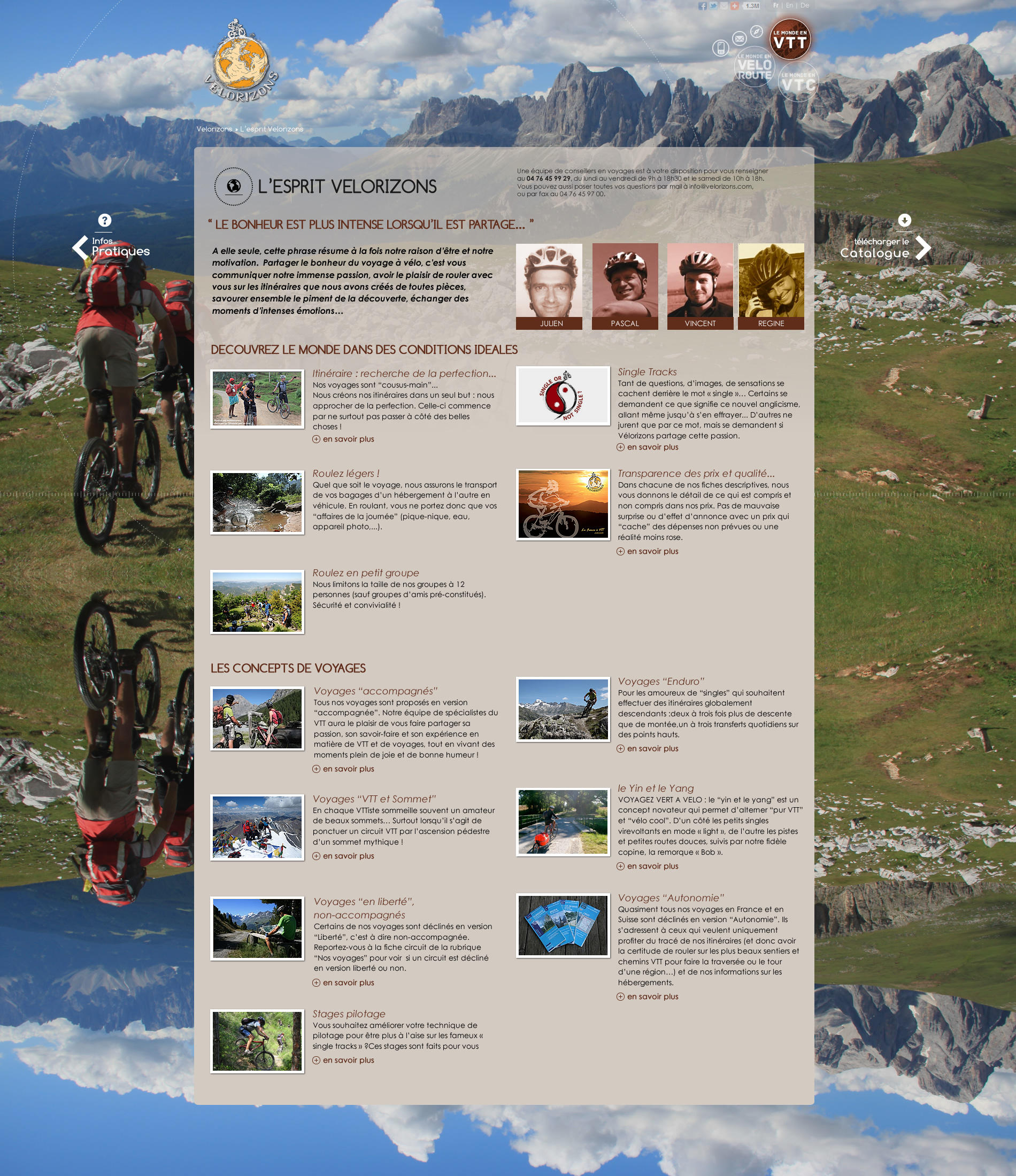 Pour la refonte de ce site dédié aux voyages vélo, conception, zoning, Web Design, prototypes et templates responsive Html5 / Css / Jquery sur base boilerplate / bootstrap.