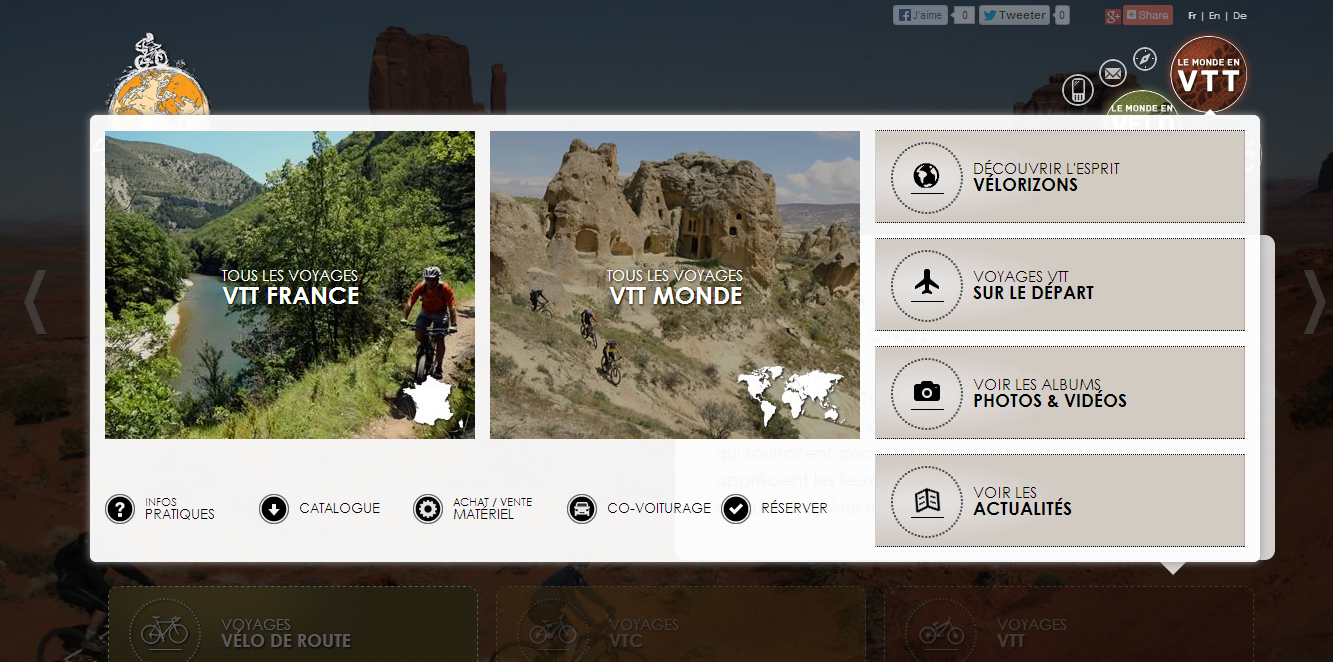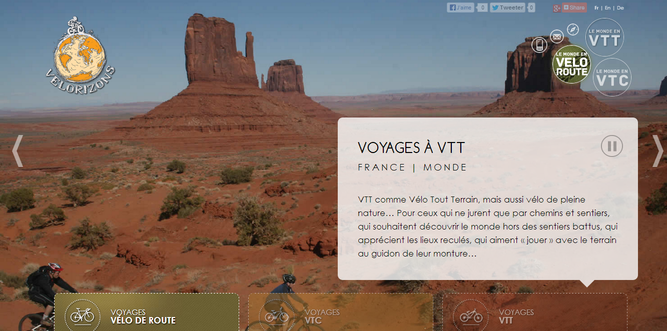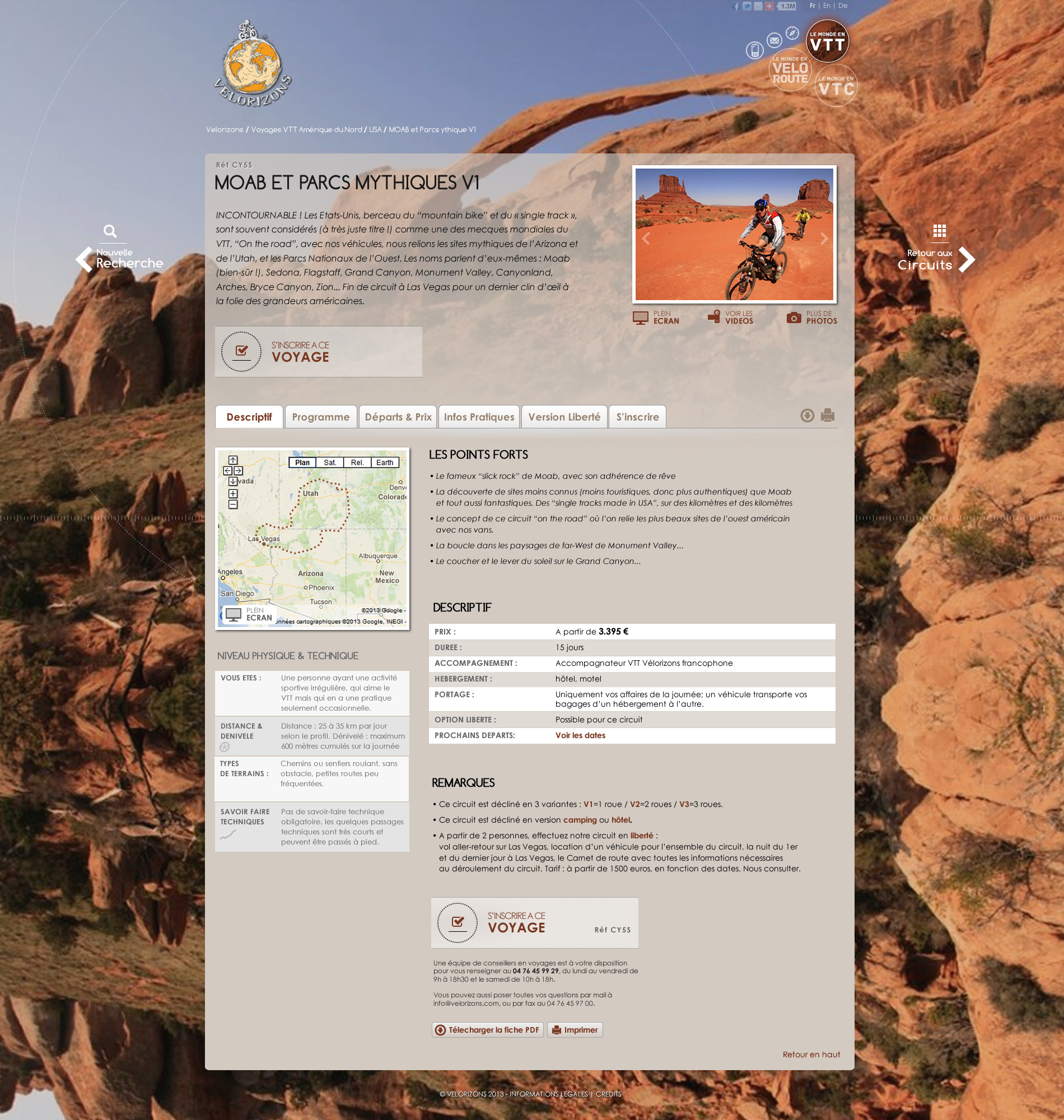 Pour la refonte de ce site dédié aux voyages vélo, conception, zoning, Web Design, prototypes et templates responsive Html5 / Css / Jquery sur base boilerplate / bootstrap.